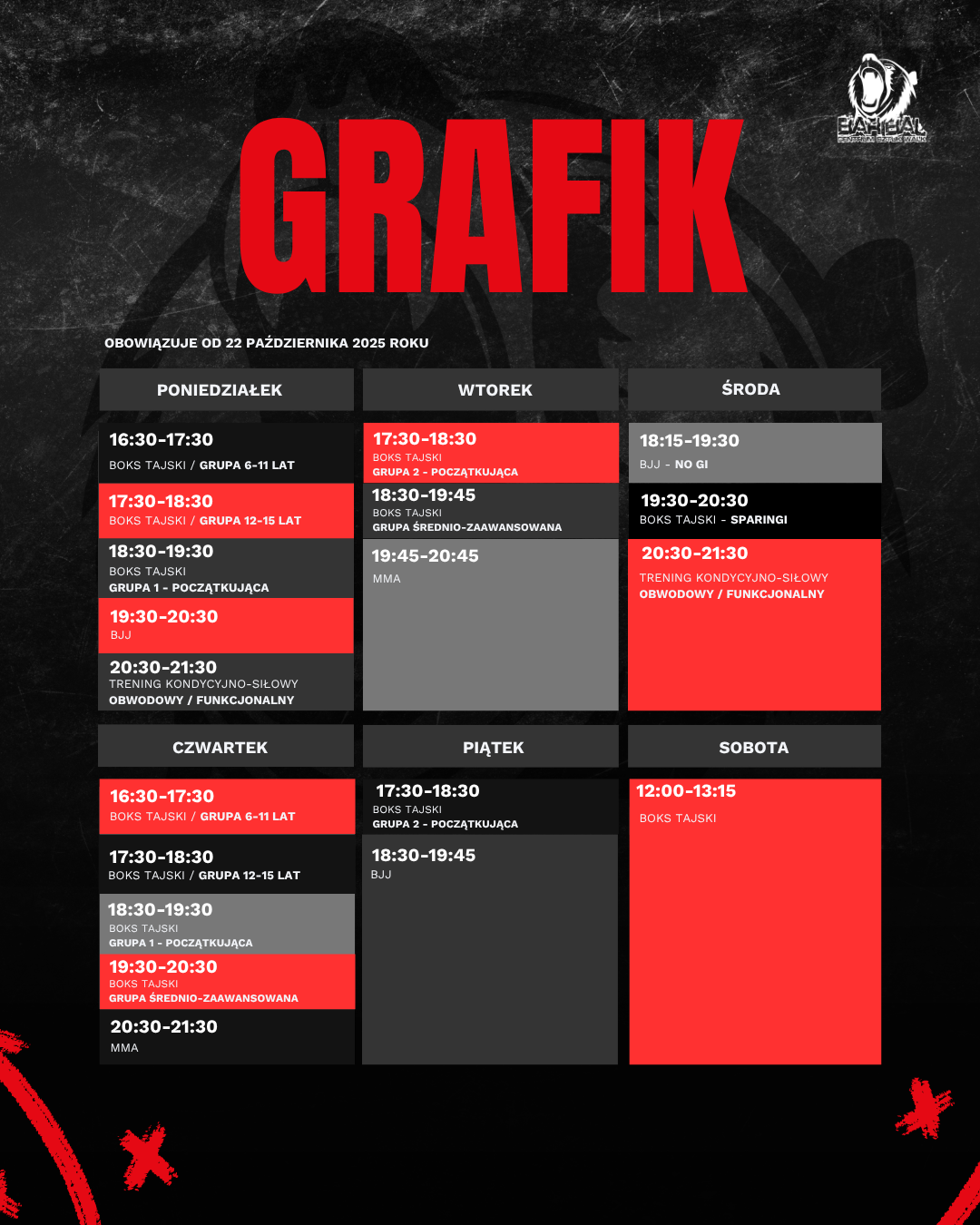 Uwaga! Nowy grafik obowiązuje od dnia 01.10.2025